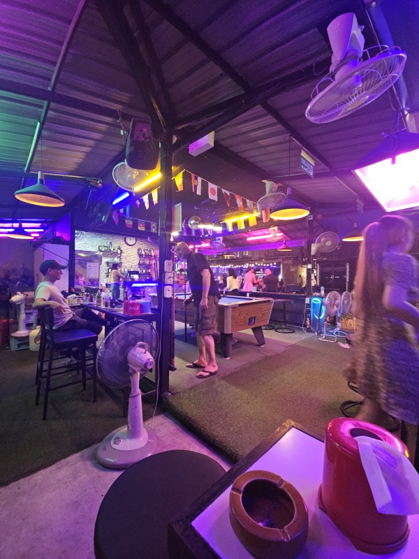 사장님을 버리고 혼자 바에 놀러갔어요 파타야의 흔한 풍경 중 하나인 오픈바 입니다이쁘장한 아이가 보여 맥주를 한 잔 했습니다 캐시어인데 단체 손님의 들어와 제 옆에 앉았습니다같이 게임도 하고술도 같이 한잔했습니다사진도 찍고 놀다보니 …