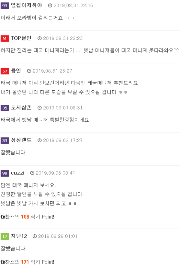 이번 여행을 정리하자면, 좀 특별한 거지요!! 달인사장님 벳남 매니져와 파타야에서 즐거운 시간 보내는 프로그램 좋은거 같습니다. 계속 해주세요 ㅎ 이번 일정에서 좋은 점과 아쉬운 점을 나누자면.. 1. 좋은점 1) 태국에서 벳남 매…