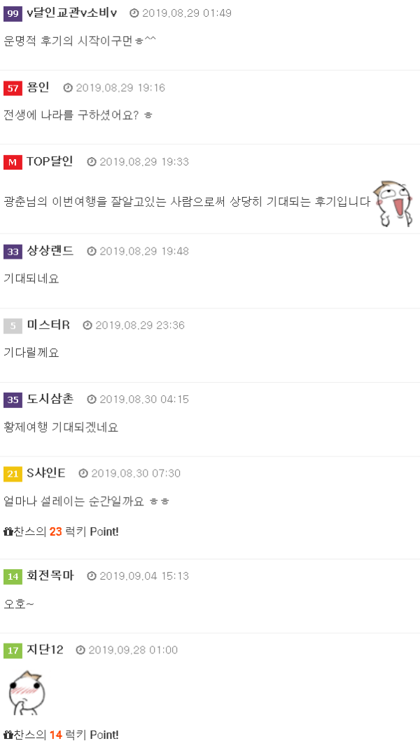 안녕하세요. 8월 13일부터 17일까지 4박 5일 일정으로 뜨거운 여름을 보내고 돌아온 꼬리별입니다. (달사님 프로필 닉네임좀 바꿔 주세요) 첫 방문 당시 달사님의 가이드로 힐링을 만끽하고 돌아와 바로 오라오라병에 걸려 치유 목적으로 다시 …