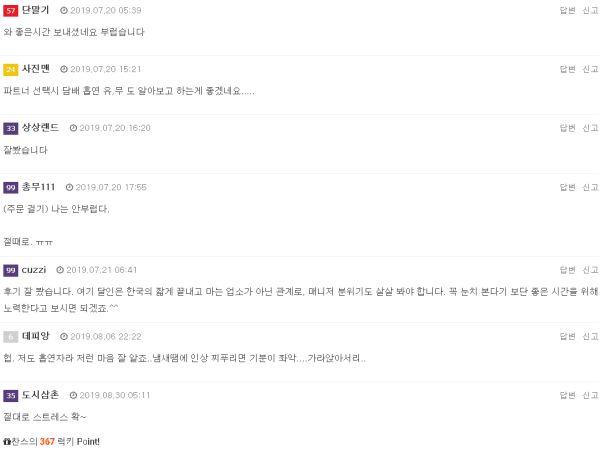 아침에 일치르고 있는데 잉..피가 나네요 파트너 생리입니다 ㅡ.ㅡ;;하다가 중단하고 쉬고있는데 아.. 이분 다시 팬티 벗기더니 입으로 ㅡㅡ끝까지 정기빨리고 씻고 현타감에 누워있는데파트너 전화바꿔줍니다 달사님이시네요애가 생리라네요 어쩌죠 그러시길래 …