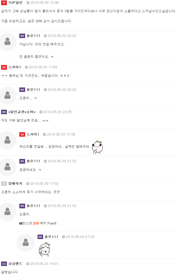 모회원님의 내상과 달인의 상관 관계 ✅99 총무111