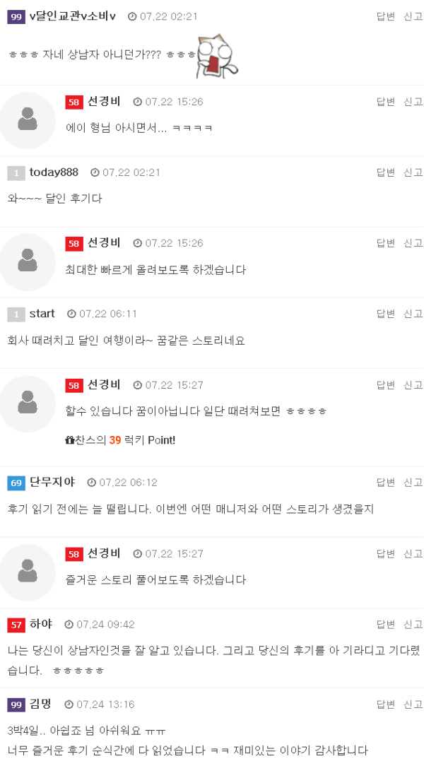 그렇게 잠시 멍하니 서있는 하대받은 남자 하남자그리고 조금 있다 보이는 소비님의 모습왠지 낮설지가 않은듯한 모습그렇게 동네 형같은 모습의 소비님을 보며짐을 풀고 새끼 가이드 미소가 준 맥주를 마시며 도란도란 이야기를 했습니다.그 뒤 다른 일행 매니져들이 먼저오…