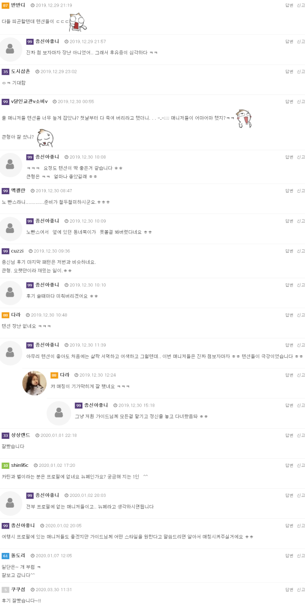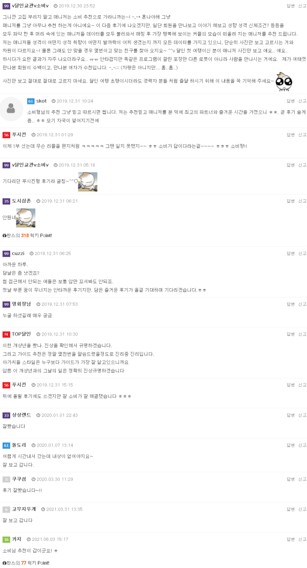 네네.. 그럼 본격적인 후기 올립니다.앞서 언급드렸던 매니저들 소개드리겠습니다.빌라에 새벽에 도착해서 맥주한잔하고 쉬고있는데.밑에서 그녀들 목소리가 들리네요..슬슬 내려가서 매니저들을 소개받았습니다.종신-잉잉반반디-나라큰형-카틴동네북-벨그리고 뒤늦게 합류하는…