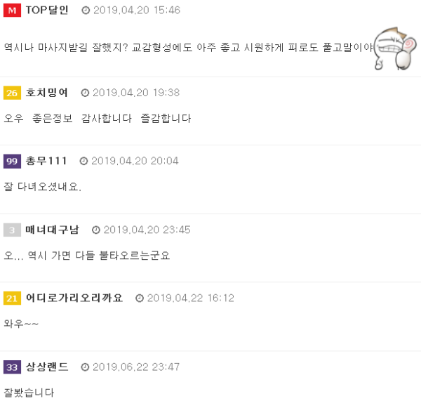 *반갑습니다 아라리입니다~^^ 달인을 알게된지 장장 4년만에 첫 달인여행을 다녀왔습니다. 매일 후기만 읽으며 부러워만하고 있었는데 이제는 제가 후기를 쓰게 됐네요. 모쪼록 제가 후기를 읽으며 많은 즐거움, 기대,부러움을 가졌던것처럼 다녀오신분들보다는 …