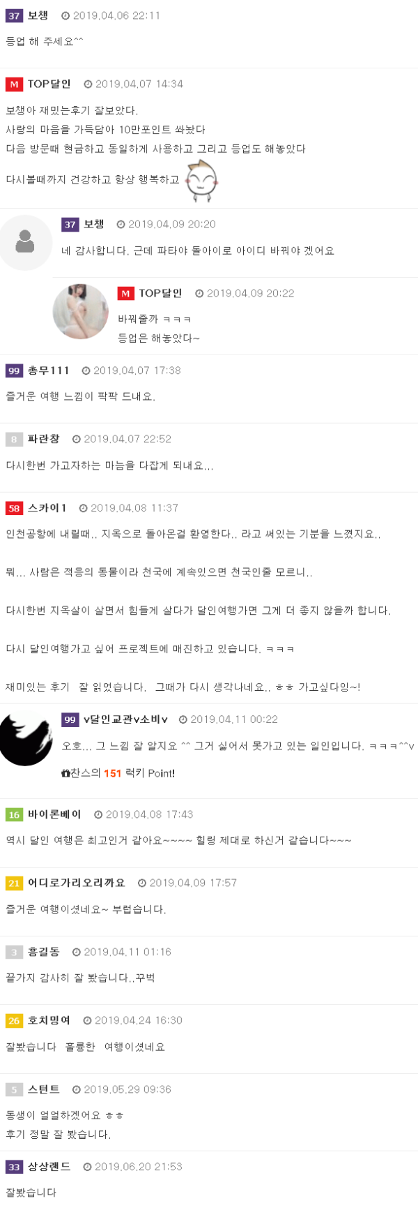 오랫동안 놀이터에서 눈팅만 했었는데 드디어 이번기회에 가게 됬습니다.^^ 글 솜씨는 없지만 간단하게 후기를 남겨 볼까 하네요^^ 오래 전 부터 달인 사이트를 알았지만 혼자 가기에는 용기가 안나서 잊고 살다가 친한 동생이…