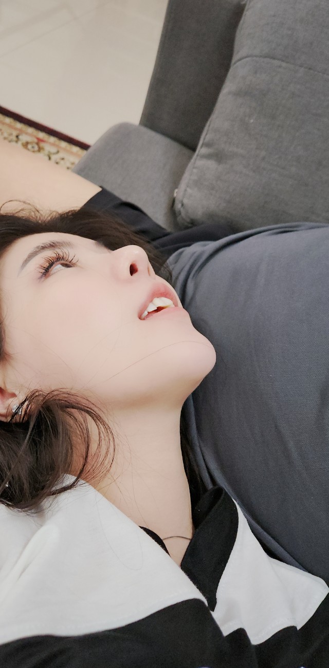 침대에 눕혀 및에서 올려다 보니 가슴라인과 콧 라인이 흡사 유럽의