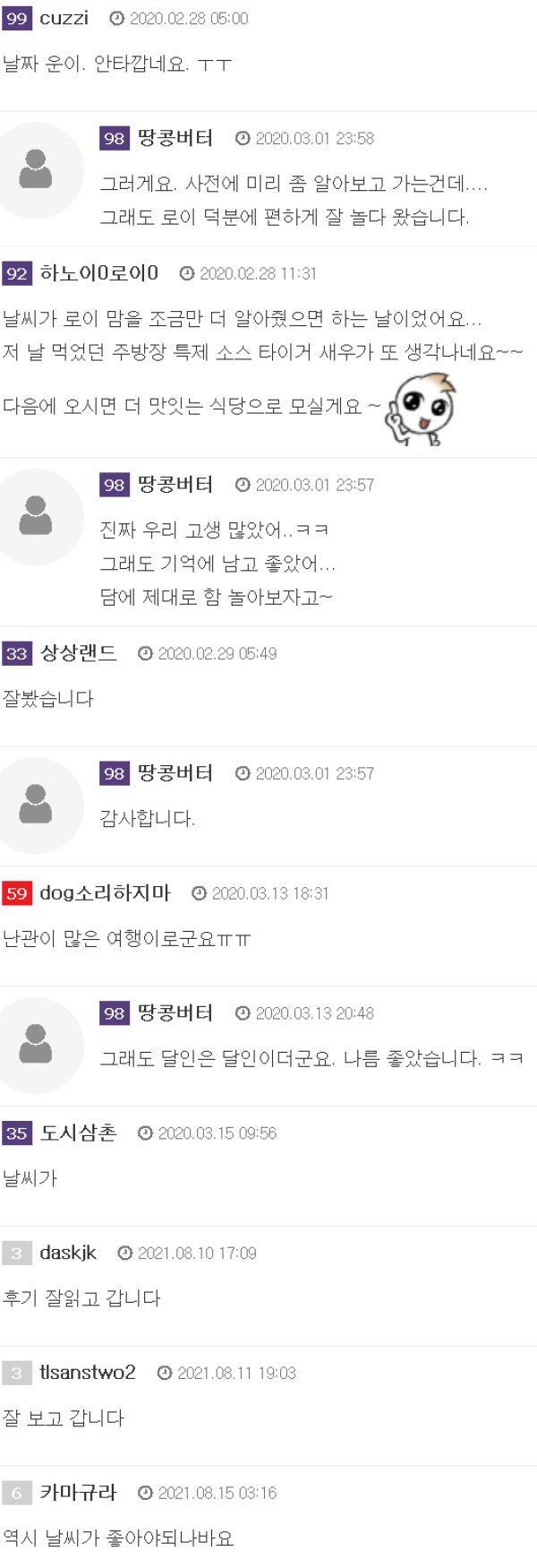 한달만에 올리는 후기 (3일차) - 날이 좋았던 마지막날 ✅ 98 땅콩버터