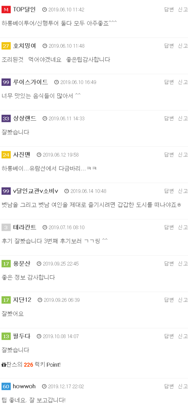 완전히 철지난 베트남 나홀로 여행 후기입니다. 지난 1월에 갔다왔으니 겨울에서 봄으로 진짜로 철이 지나버렸네요 제가 원래는 여기저기 유흥을 해도 후기는 잘 안올리는 편인데얼마전 태국으로의 2번쨰 달인 여행 후최근 달인사이트에 들어오는 사기꾼 넘들 때문…
