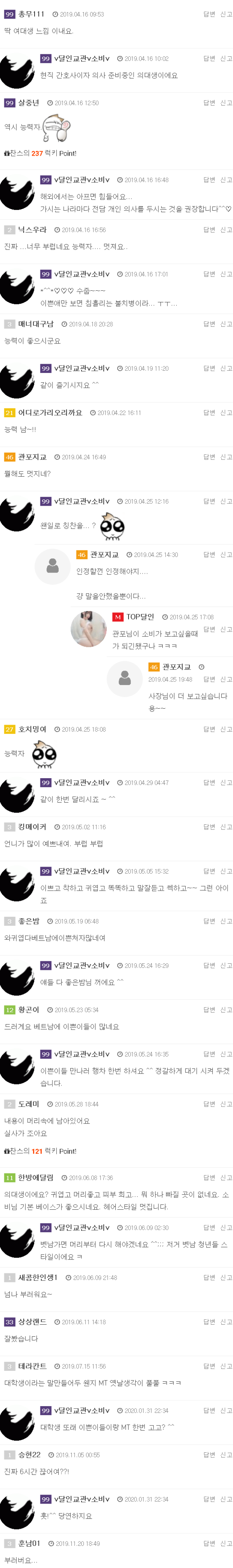 제가 베트남을 선택한 이유는1. 태국은 국내에도 많습니다. 이미 국내에서 섭렵했구요. 결정적으로 아가씨들이 제 취향이 아닙니다.2. 중국은 출장으로 많이 다녀봤는데 항상 만족도가 낮았습니다. 북경이나 상해는 그나마 나은데 청도, 위해는 확떨어지는 경향이3. …
