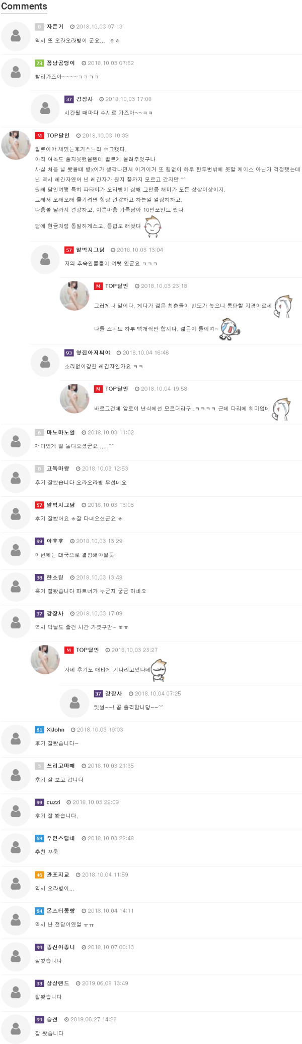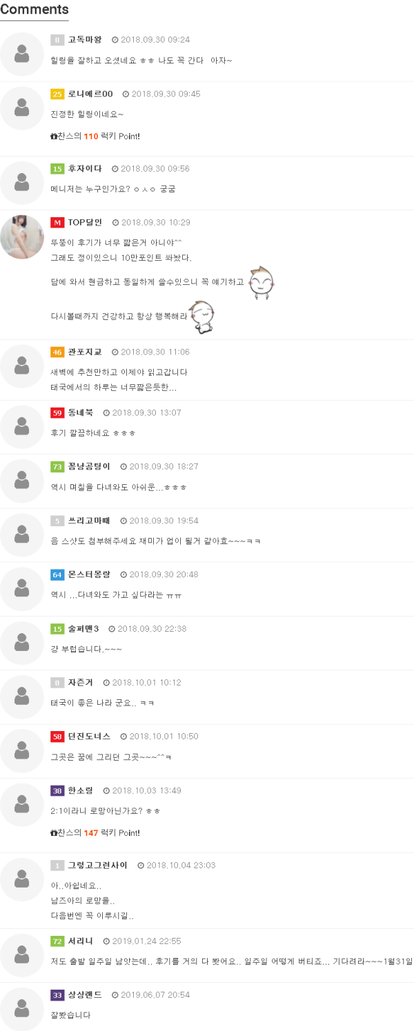 안녕하세요. 뚜뚱입니다.달인을 이용한 여행이 세번째지만 후기를 안쓰다가 달사형님의 뇌물()에 넘어가 후기를 작성하게 되었습니다.달인을 만나기 전에는 거의 혼자 파타야에 놀러와 낮에는 자고 저녁에 일어나 아고고에 출근해서 LD를 돌리며 놀았습니다...그러다 작년 이맘때쯤…