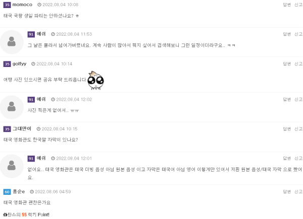 원래 생각했던 일정은 10월 이었지만일행과 이야기 하던 중 7월 말로 일정을 예약하고 대략 3년만에 다녀 왔습니다.몇번 다녀와도 출발할때는 싱숭하네요.하필 이때 한국이나 태국이나 확진자 수가 늘어서 그 사이 입출국 정책이 바뀌지 않을까 수시로 확인도 하고 했네…