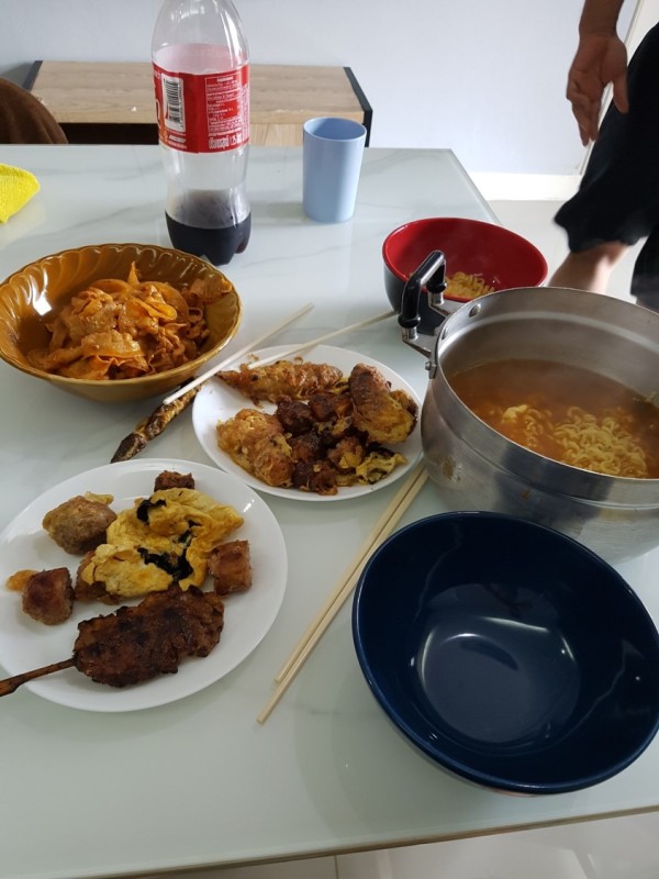 마지막 날이 밝았습니다.오늘도 역시 서리니는 아침부터 일어나서 혼자 수영하고, 어제 매워서 못 먹은 꼬치를 가져다가 계란을 묻혀서 다시 데웠네요. 이제 덜 매워져서, 늘 그렇듯 라면과 함께 아침을 같이 먹습니다. 식사 후 혼자 영화도 보고…