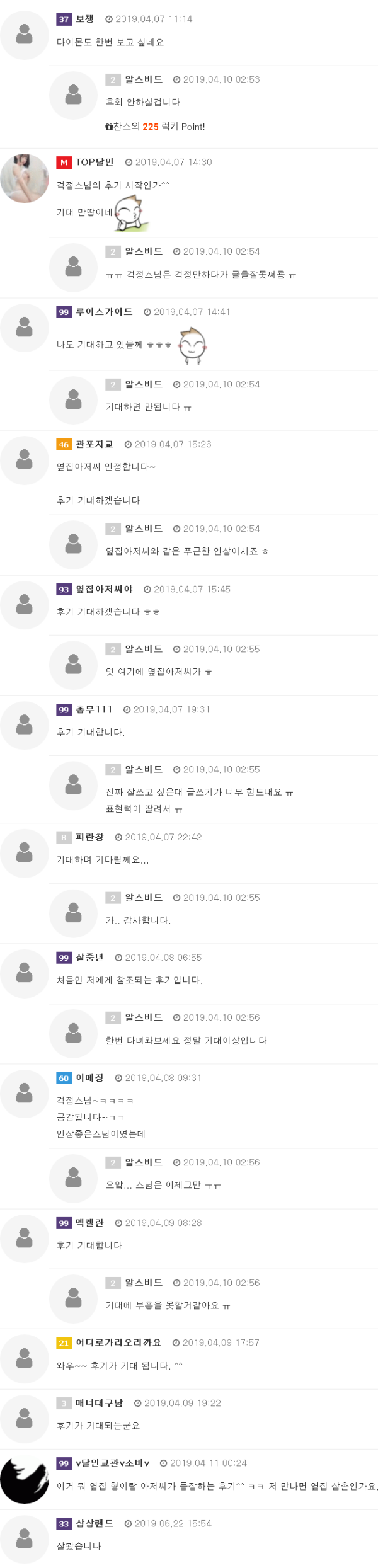 오랫동안 놀이터에서 눈팅만 했었는데 드디어 이번기회에 가게 됬습니다.^^ 글 솜씨는 없지만 간단하게 후기를 남겨 볼까 하네요^^ 오래 전 부터 달인 사이트를 알았지만 혼자 가기에는 용기가 안나서 잊고 살다가 친한 동생이…