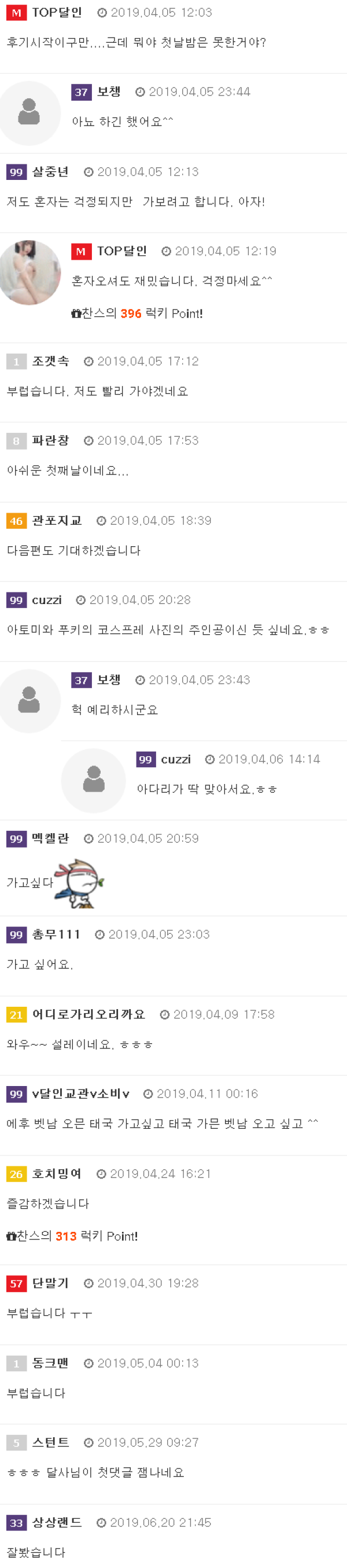 안녕하세요 처음으로 후기글쓰네요다른 회원님들 후기글쓰실때 집에서 잉여잉여하다가 드디어 다녀오네요해외여행이 처음인지라 기대반 걱정반으로 10시비행기를탔습니다.2시정도되서 공항에도착하니 루이스형님이 헐래벌떡 저를맞아주셧죠.옆집형님같은 모습에 자연스럽게 형님이라 …