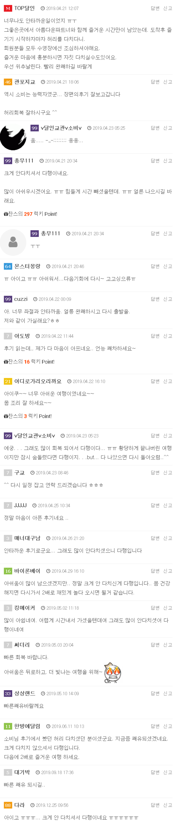 먼저 달사님과 소비님께 늦었지만 죄송하다는 마음을 전합니다. (이제서야 의자에 앉을 수 있을 정도로 회복이 되었습니다....ㅜ_ㅜ) 부득이한 사정으로 일정을 지키지 못하고 먼저 돌아오게 되어서 금전적으로나 시간적으로나 불편하게 해드려서 죄송합니다. ㅜ_ㅜ&nb…