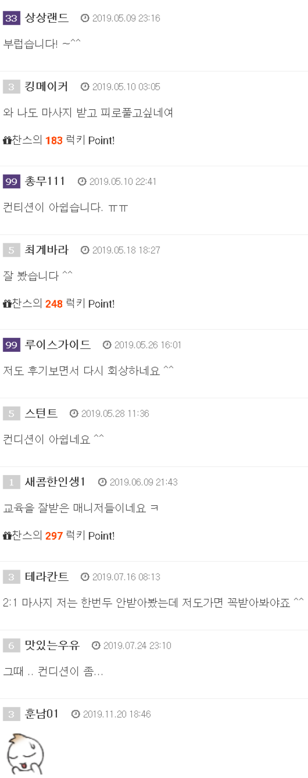 죄송합니다.......아~ 여러가지 이유로 업뎃을 못했네요~저번글 댓글봤는데 밤일 써달라고 하시는분 많던데...이거 일부러 안쓴겁니다 ㅎㅎ밤일은....만족했느냐 안만족했느냐는 지극히 개인적인 성향에 따라 갈린거라... 와꾸 어느정도 맞고, 성격좋고, 그리고 제가 만족했…
